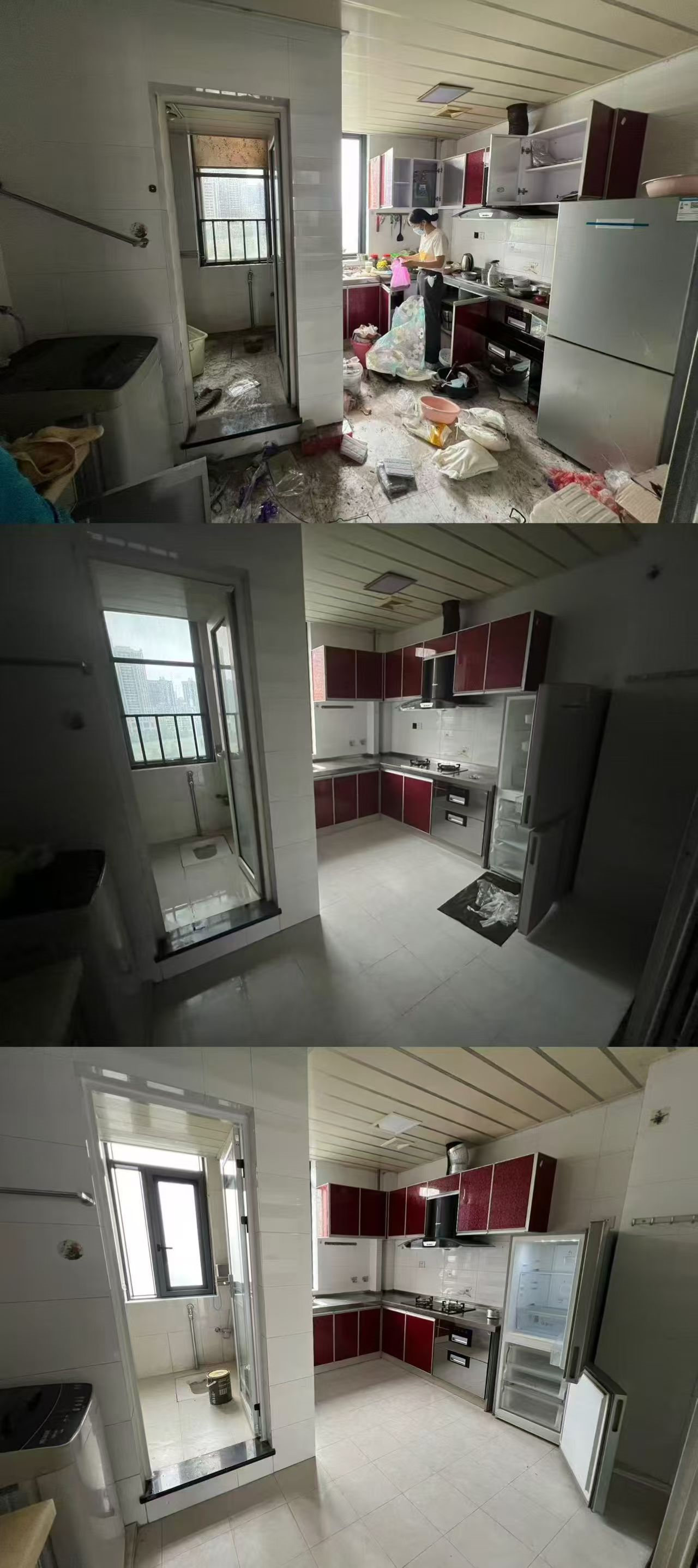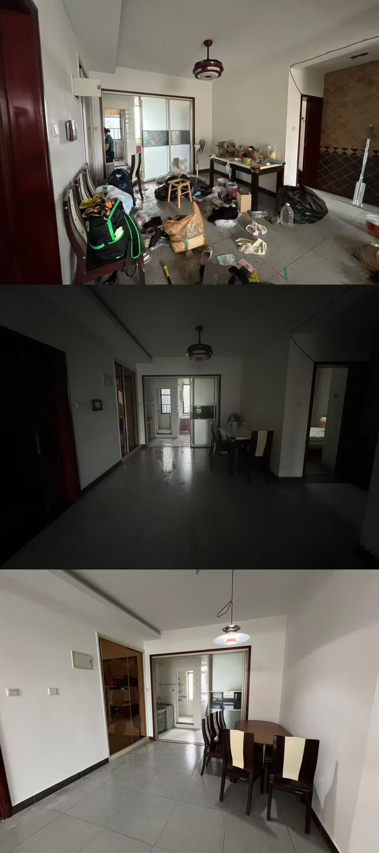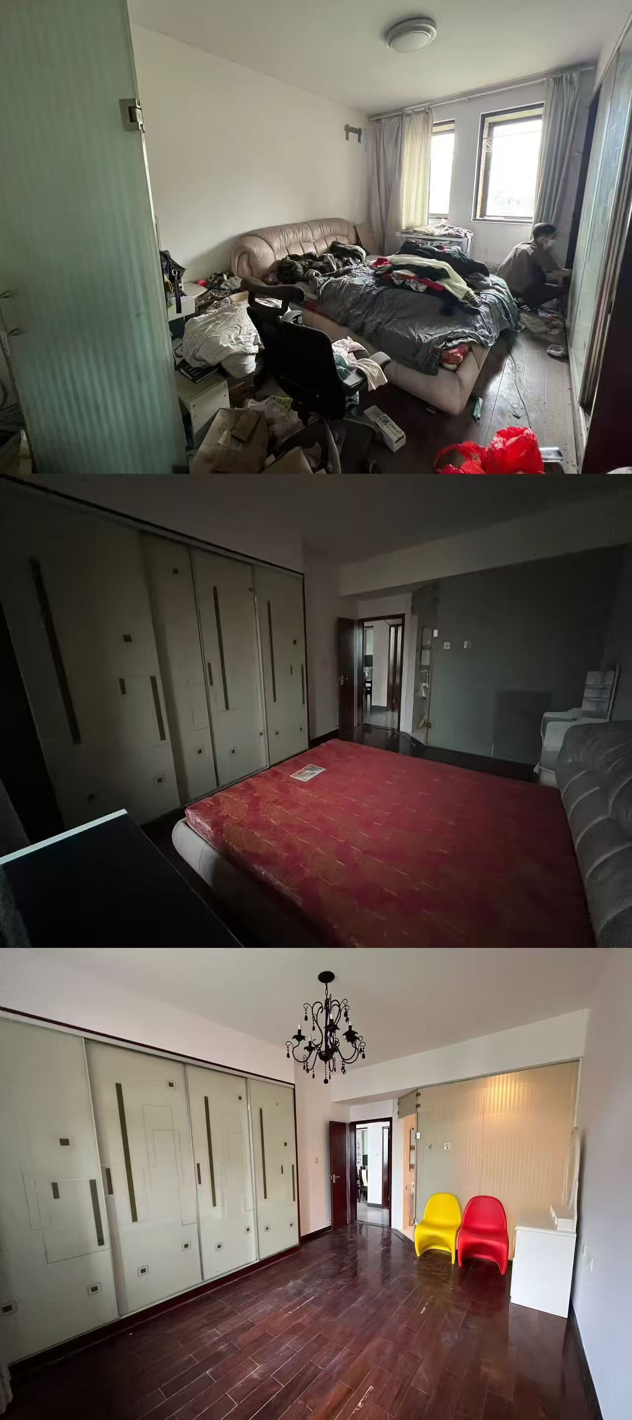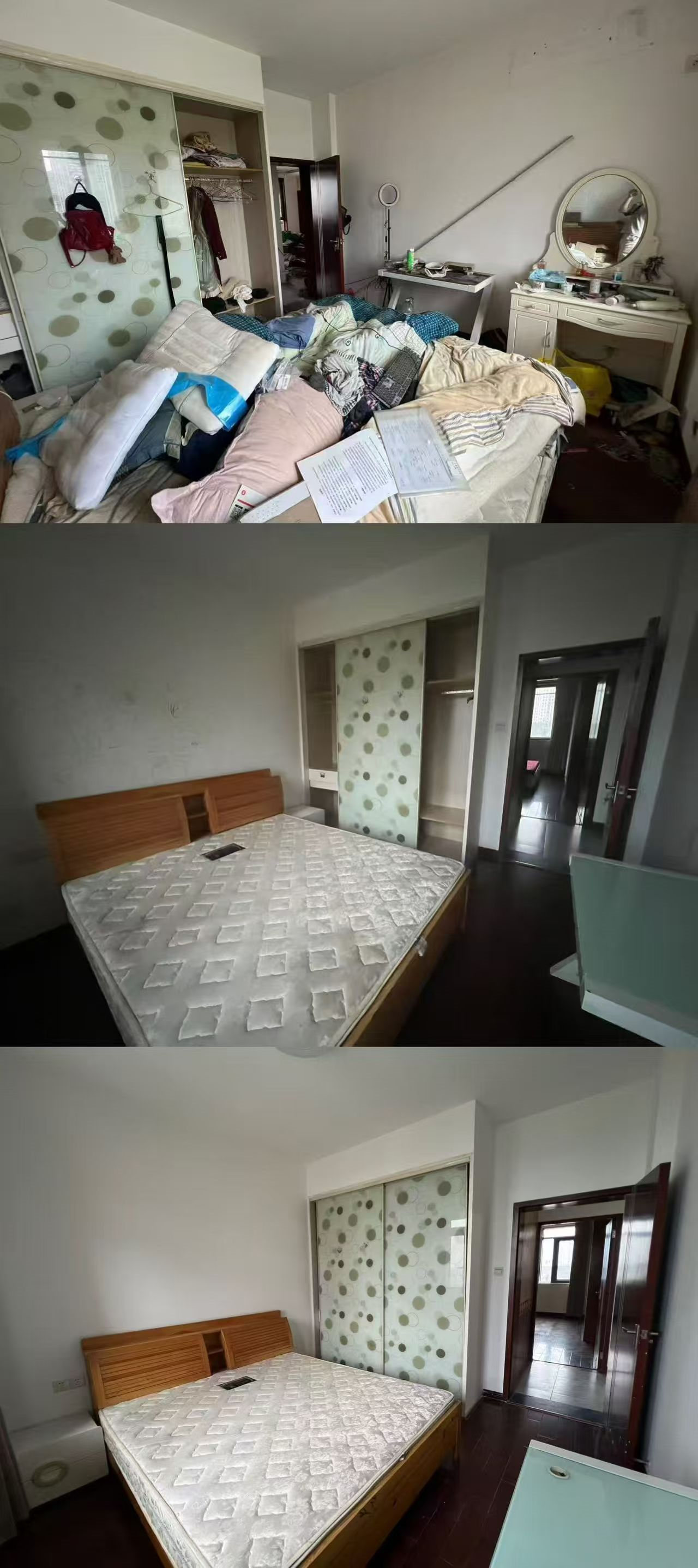 下面大家看下收房时、收房搞完卫生时、收房搞完卫生重新刷了墙漆的对比,效果就完全不一样了。搞卫生花了1000多,喊三棵树全屋翻新墙漆6000多,就这么几千块钱就变样了。若是现在这个效果上拍,102.8万肯定是拿不下来的。