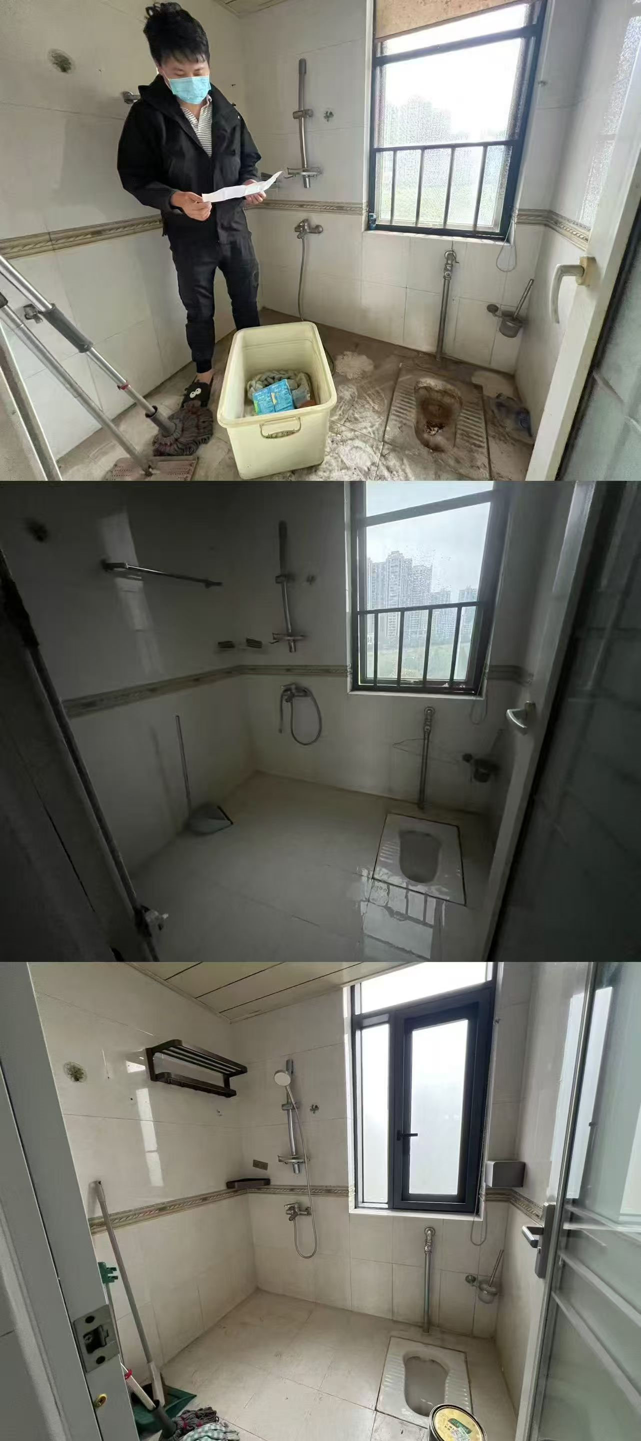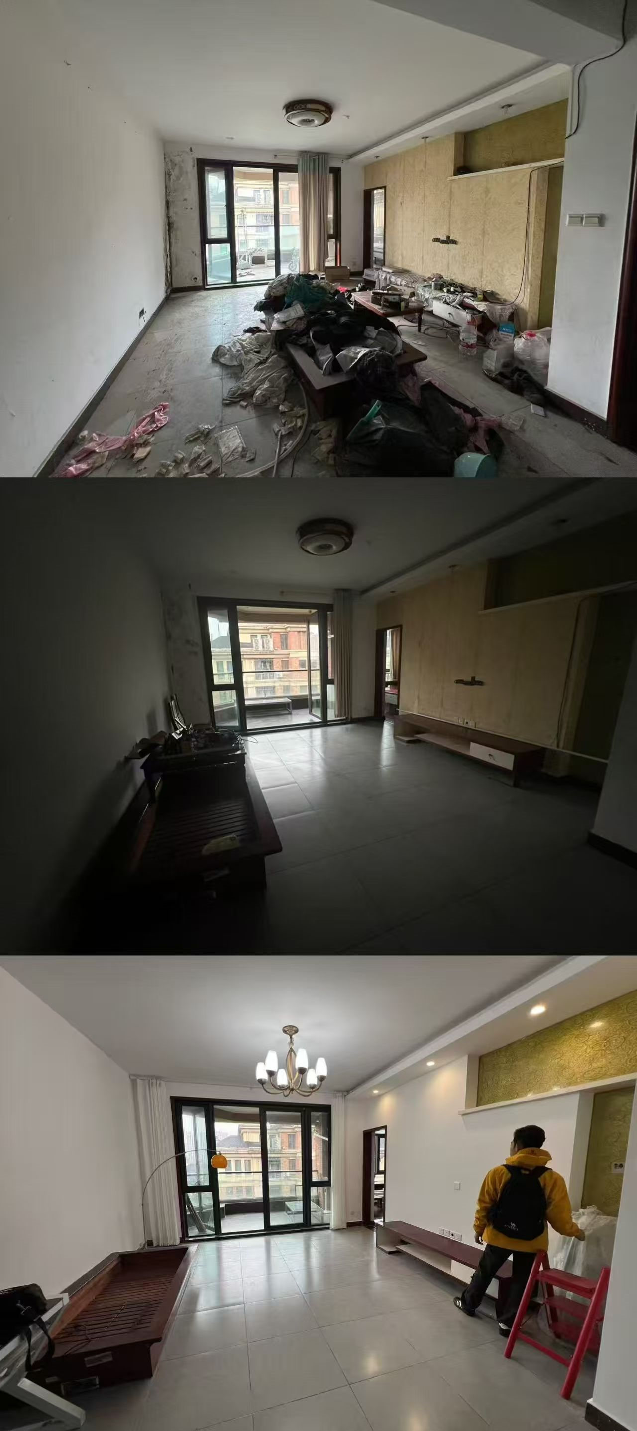 下面大家看下收房时、收房搞完卫生时、收房搞完卫生重新刷了墙漆的对比,效果就完全不一样了。搞卫生花了1000多,喊三棵树全屋翻新墙漆6000多,就这么几千块钱就变样了。若是现在这个效果上拍,102.8万肯定是拿不下来的。